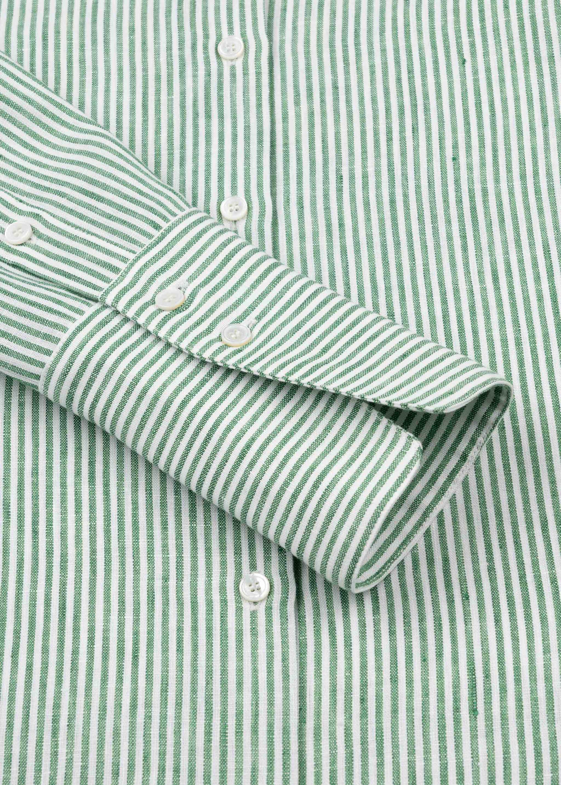 Introducing our 'woman shirt' in an airy, striped pure linen; it is the safest bet if you are looking for a feminine and impeccable shirt. Well proportioned and cut to sit the right amount of slim, it delivers the best figure both opened and closed to the neck. The oversized cuffs are that chic add on that refreshes the style and gives you a swag in your every activity. Our shirt is entirely handmade in the city center of Milan.
