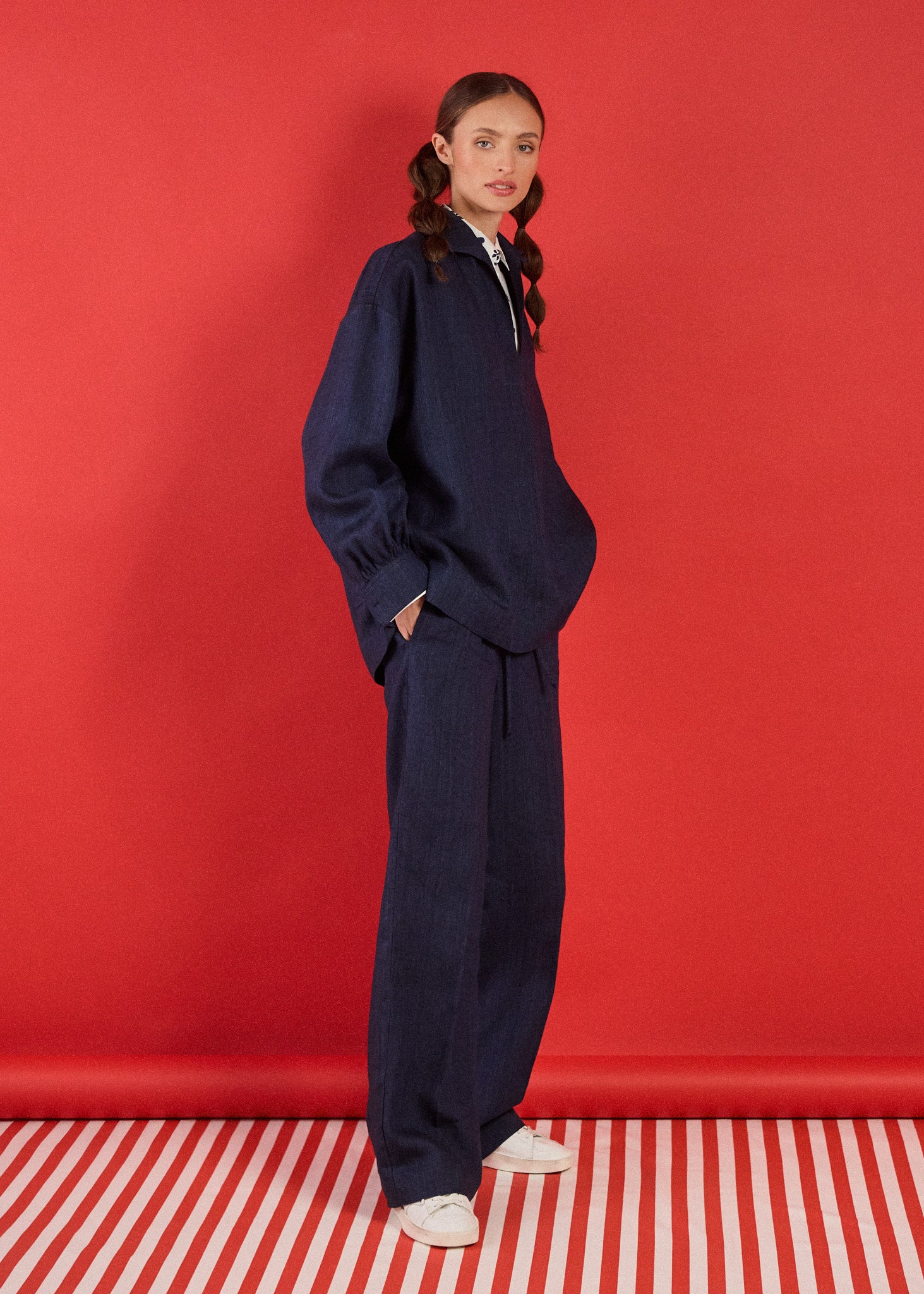 Seek no more, if comfort and elegance is what you are looking for. The oversized fit of our 'Polo Shirt' in fresh, light weight linen - made in England- gives you the chance to style this shirt with all kinds of different companions. High waisted pants, shorts, skirts… literally just fling it on and play with it, it will never let you down.